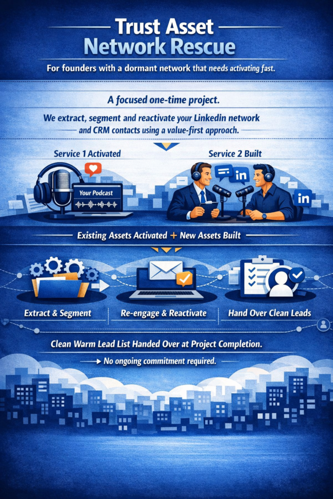 For founders with a dormant LinkedIn network or CRM — and no time to run the outreach themselves.